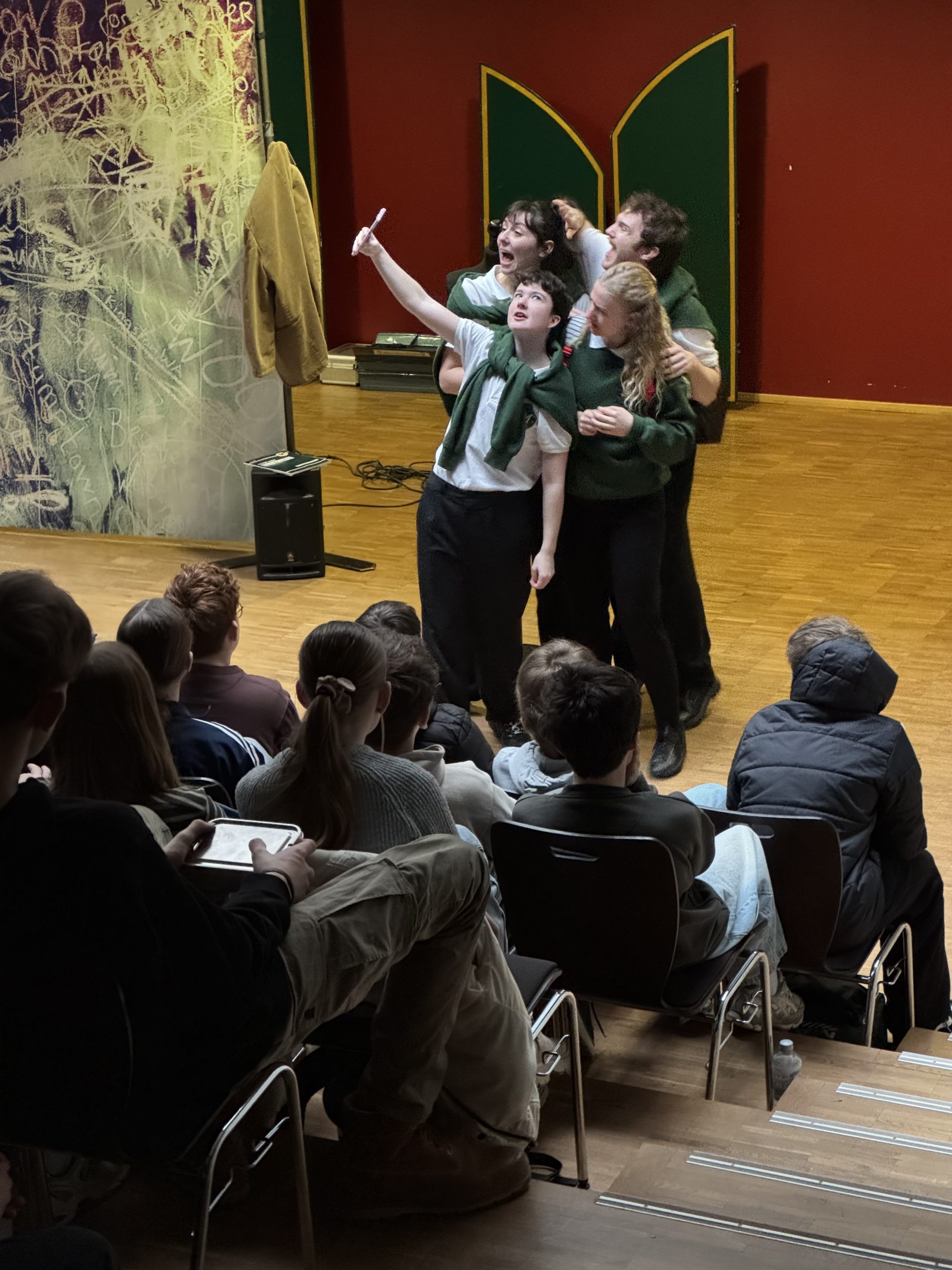17. Dezember 2025Auch in diesem Jahr war wieder eine Gruppe des White Horse Theatre, bestehend aus vier jungen Schauspielerinnen und Schauspielern, zu Gast am Gymnasium Eltville. Sie präsentierten an zwei Tagen im Atrium der Schule verschiedene Theaterstücke, die jeweils an das Alter und Englischniveau der Zuschauenden angepasst waren.