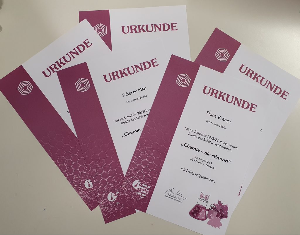 17. März 2026Beim diesjährigen Schülerwettbewerb „Chemie - die stimmt!“ haben fünf Schülerinnen und Schüler unseres Gymnasiums teilgenommen. Damit haben wir bei der Auslosung für Schulen mit besonders vielen Teilnehmern einen Sonderpreis gewonnen: