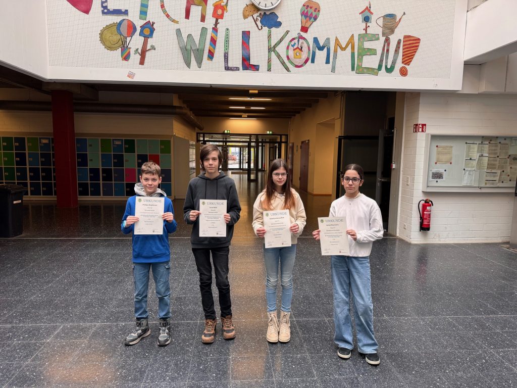 Besonders gratulieren wir Fiona Branca, 9a, und Max Scherer, 8d, die sich für die zweite Runde des Wettbewerbs qualifiziert haben