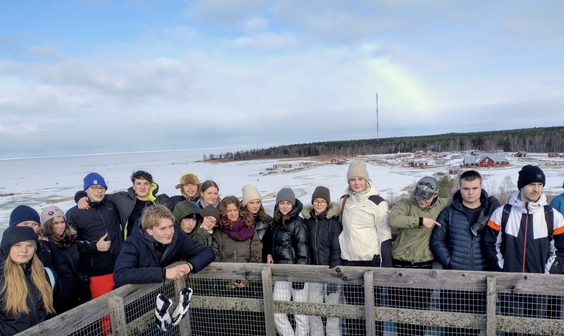 Der Mittwoch – mein persönlicher Favorit – stand unter dem Thema „Leben im Einklang mit der Natur“, das sich an einem nachhaltigen Entwicklungsziel der Vereinten Nationen orientierte. Unsere Partner aus Finnland zeigten uns das örtliche Naturkundemuseum ‚Terranova‘ und machten dann einen wunderschönen Ausflug mit uns in den ‚Kvarken Nationalpark‘, nach Svedjehamn. Dort konnten wir auf der gefrorenen Ostsee spazieren gehen, ein kleines, buntes Dorf bewundern und Schneemänner bauen. Zum krönenden Abschluss haben wir dann dort auch noch gegrillt und lange am Feuer über unsere Verbindung zur Umwelt geredet. Dabei stellten wir fest, dass die Finnen ihre natürliche Umgebung mehr wertschätzen und ein gesünderes Verhältnis zu dieser zu haben scheinen, als wir es in Deutschland tun.