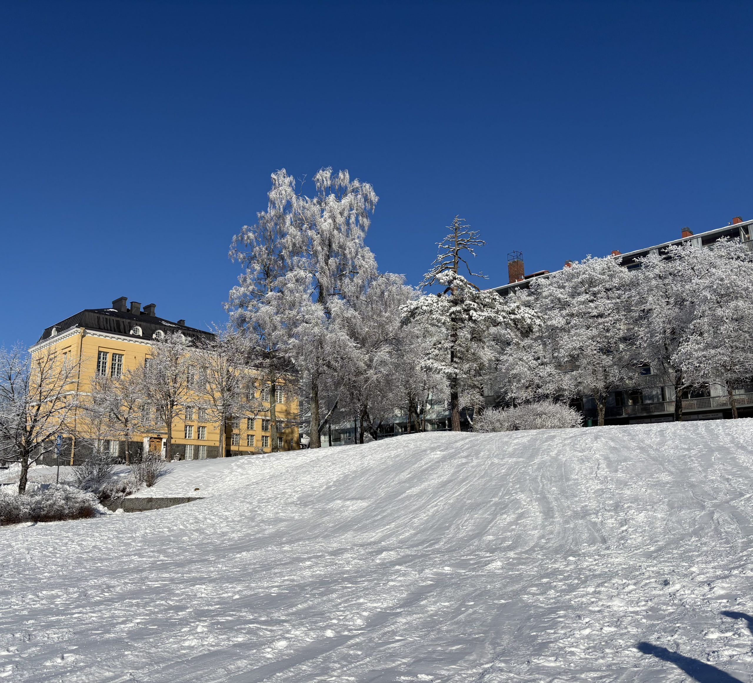 Am nächsten Tag besuchten wir zunächst den finnischen Schulunterricht und stellten fest, dass unser Unterricht in Deutschland gar nicht so schlecht ist. Wir arbeiteten weiter an unserer Dokumentation zum Wochenthema und erfuhren danach im Jugendzentrum ‚Kultsa‘ wie soziale und politische Teilhabe in Finnland organisiert ist und wie das Jugendparlament in Vaasa arbeitet: das läuft ganz ähnlich wie bei uns in Eltville. Am Nachmittag hatten wir Freizeit, die wir für kindischen Spielspaß im Schnee nutzten.